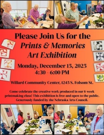 Willard Community Center recently wrapped up the third heartwarming and enriching session of the Prints & Memories 8-week class, a Creative Aging through the Arts Program (CAAP) made possible through generous support from the Nebraska Arts Council. This class brought together an inspiring group of lifelong learners whose stories, creativity, and enthusiasm made each session truly special.