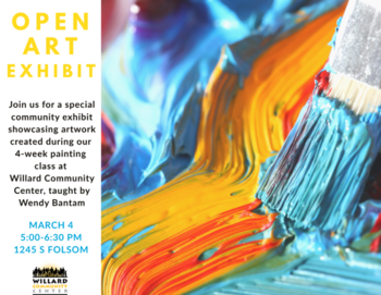 Willard Community Center is proud to host a special open art exhibit celebrating the completion of our recent 4-Week Painting Class, taught by Wendy Bantam. The exhibit will take place on March 4 from 5:00–6:30 PM and is open to family, friends, and community members.