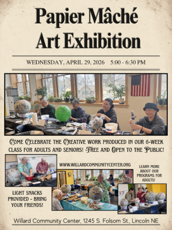 Willard is celebrating our adult and senior students from our 6-week Papier Mâché workshop, with an art exhibition featuring their creative pieces! Join us for camaraderie, snacks, and their imaginative journey~