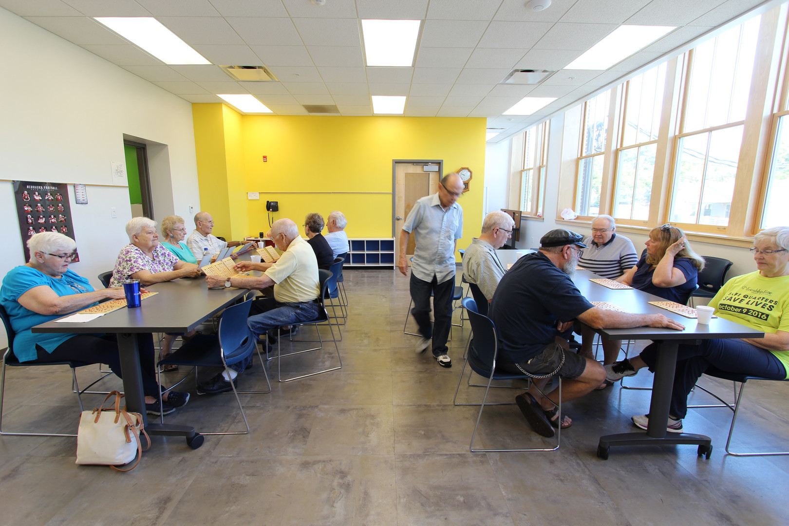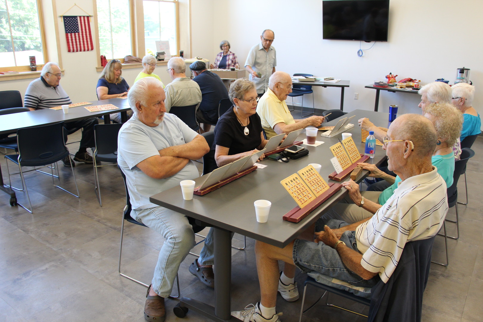 Monday and Wednesday mornings you can find adults playing licensed Bingo from 9:30 to 11:15 am. The cost is $1.00 per card for 13 games of Bingo. You must be over 18 to play and everyone is welcome. Bingo starts at 9:40 am so you will want to come earlier to pick out your cards, get a cup of coffee or get in a game of pitch before it starts. We play 6 games of Bingo and then take a break to play Pitch or other card games for 25 minutes then it is back to Bingo for the next 7 games.