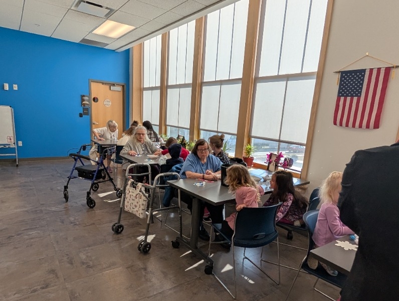 Snowflakes and friendship filled Willard Community Center as the Early Explorers preschool and pre-k students gathered for a special intergenerational activity with new friends from Lexington Assisted Living and participants from Willard’s adult program. Together, children and adults created snowflakes and friendship bracelets, shared conversations, and enjoyed meaningful moments that highlighted the joy of learning and connecting across generations.