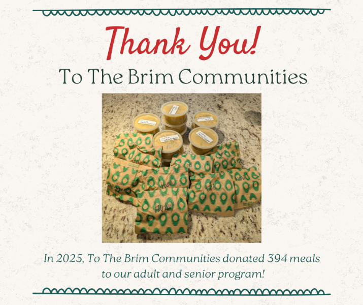 We are incredibly grateful! To The Brim Communities generously donated 18 frozen meals and bags of English muffins for our adult program. Your kindness and support make a meaningful difference in the lives of the seniors we serve. . . .
